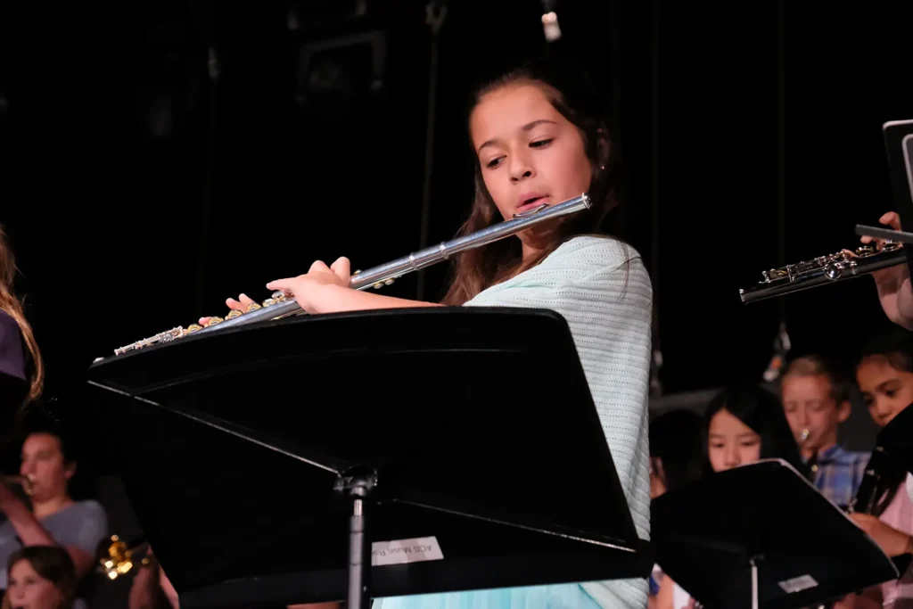 Students in our elementary grades attend music class each week as part of our integration of the arts into our curriculum. Lower elementary grade level students focus on instruments, genres, and composers while then entering into learning the scale, how to read music, beats, tempos, and how to take music direction as a group. At third grade, students begin to put these skills into practice while they learn how to play the ukulele and continue to master that instrument through fourth grade before being given the opportunity to learn a wind instrument in fifth grade.